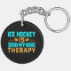 Hockey Tema Keychain med hockeypucks och text som säger Ice Hockey är My Therapy!