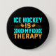 Hockey-temaknapp med hockeypucks och text som säger Ice Hockey är My Therapy!