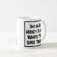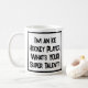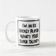 Lustigt slogan på mugg som säger "Jag är en Ice Hockey Player. Vad är din toppen?" Mugg för en ishockeyspelare. Svart och vit fet text.