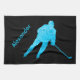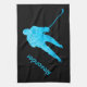 Turocise personlig hockey-skatedun med hockeyspelare - en användbar ishockeygåva som anser att det är viktigt att torka ut bladen efter träning.Färg: turkos på svart bakgrund.Design: Silhouette of hockey player + personifierar med hockeyspelarens namn.