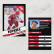 Föräldrar med små ishockeyspelare i ligan kan stolt sina barns landvinningar på fält med dessa röda och svarta handelskort i anpassadet. Båda fotona, fram och bak, kan ändras för att visa ditt eget lilla läckage, inklusive ett utbytbart Jersey-nummer. Nästan all text på baksidan kan ändras, inklusive spelarstatus, bio, position. Att erbjuda mycket att dela ut mellan vänner och släktingar, samt att ditt barn kan handla med andra barn som också har samlingskort. Det skapar en särskild ishockeykortsamling, skapar för unika gåvor.