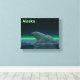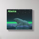 Ett fredligt ögonblick i den långa arktiska natten. Ett Polar Bear vilar vid kant på ett öppet område i packisen.Norra Ljus glöden i avstånd, ljusa stjärnor, skaka runt. Texten som läser "Alaska" visas i ljusande grönt och vit. Polarnas björnar är i fara. Hur mycket längre kommer sådana scener att kunna inträffa? Hjälp spara Polar Bears från utrotning.
