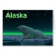 Ett fredligt ögonblick i den långa arktiska natten. Ett Polar Bear vilar vid kant i ett öppet utrymme i förpackningsisen. Norra Ljus glöden i avstånd; ljusstjärnorna skymmer. Texten som läser "Alaska" visas också i ljusande grönt och vit. Polarnas björnar är i fara. Hur mycket längre kommer sådana scener att kunna inträffa? Hjälp spara Polar Bears från utrotning.