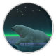 Ett fredligt ögonblick i den långa arktiska natten. Ett Polar Bear vilar vid kant på ett öppet område i packisen.Norra Ljus glöden i avstånd, ljusa stjärnor, skaka runt. Polarnas björnar är i fara. Hur mycket längre kommer sådana scener att kunna inträffa? Hjälp spara Polar Bears från utrotning.