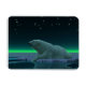 Ett fredligt ögonblick i den långa arktiska natten. Ett Polar Bear vilar vid kant på ett öppet område i packisen.Norra Ljus glöden i avstånd, ljusa stjärnor, skaka runt. Polarnas björnar är i fara. Hur mycket längre kommer sådana scener att kunna inträffa? Hjälp spara Polar Bears från utrotning.