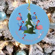 Denna förtjusande illustration med isskrikande flamingor som bär julhattar och scarf, som cirkulerar i Julgran, gör en underbar bakgrund för ditt prydnadsföremål. Du kan lägga till ditt favoritfotografi och ett personligt meddelande på baksidan av prydnaden och ge det till dina nära och kära.