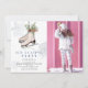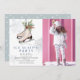 Den här fotoinbjudan till retro och elegant "isskridande party" på födelsedagen innehåller en vit frusen bakgrund för snö med ett par isskridskor och faux silver snöflingor. Den omvända sidan har en blå bakgrund med vit snö mönster. Anpassa efter dina behov. Du hittar fler matchande produkter i min butik.