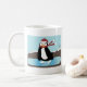 En berömvärd sjalv med penguin har vintern dag med lite isskridskor på mugg