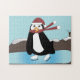 En aptitlig sjalv med penguin har vintern dag med lite isskridskor på ett pussel