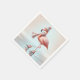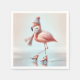 En liten flamingo glider lätt över en isig yta med isskal, en varm scarf och en mysigt vinterhatt