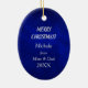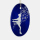 Den här eleganten har julprydnaden en silver silhuette-kvinnlig skater framför en spray från silver snöflingor. Bilden placeras på en blå övertoningsbakgrund som nästan ser ljussken ut. Baksidan av dekorationen har samma blå bakgrund med texten fält som du kan anpassa. Perfekt för skaterna för is eller isskor i fläkt, och gör också ett underbart keepy för ett barn från föräldrar eller mor- och farföräldrar.