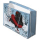 Bekvämt hand plockade och färgad Newfoundland puppy hund hade isbildning i en snövinter under-gåspåse