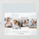 Den unika moderna Hanukkah-kortsdesignen har fyra favoritfoton som ordnats sida vid sida med överdimensionerade blek blå snöflingsilhuetter i bakgrunden. Anpassa med din anpassningsbar Julhälsningar och släkt med namn i klassiskt brev, med "Joyous Hanukkah".