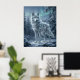 Bring the power of winter indoors with this Ice Wolf artwork, showing a majestic wolf sculpted from crystal ice, frosted textures, and shimmering blue-white light. Standing proudly in a frozen boreal forest, the wolf is surrounded by snowy pines, icy terrain, drifting snow, and distant mountains beneath moonlight or aurora glow. Elegant yet fierce, this fantasy animal print adds calm strength and dramatic beauty to bedrooms, offices, cabins, and modern interiors. Perfect for wolf lovers and winter décor collectors.