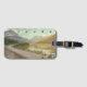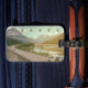 A scenic Icefield Parkway Road in Banff National Park, Canada, winds through a valley, with a white RV driving along the asphalt. The road curves gently, leading towards a picturesque lake nestled between snow-capped Rocky Mountain peaks. The sky is a soft blue with fluffy white clouds, and the overall atmosphere is serene and tranquil. The image is captured in a warm, vintage tone, enhancing the sense of nostalgia and adventure.