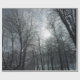 Sol som ligger bakom is täckte träd, vintern i Ontario, Kanada