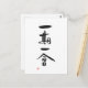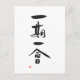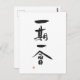 Kanji-tecknen på detta vykort uttalas i Ichigo Ichie och översätts ofta till "en gång, en gång möts" eller "varje ögonblick endast gång". Här skrivs tecknen lodrätt, och tecknet vid grund, det som har toppen "tak" över det, är det som traditionellt används för att skriva detta ordspråk. Men på senare tid har 会 kom i stor använda i detta sammanhang, eftersom den andra karaktären inte längre används i vardagliga sammanhang. Vi har dock valt den äldre karaktären här, både av estetiska och historiska skäl. Det fungerar bra med lodräts kalligrafi, och det återspeglar också historien med detta ordspråk, som har sina rötter på 1600-talet. Båda versionerna är kopplade till den japanska teceremonin och kan ofta ses på scrollsar (kakejiku) i terumsalkoger (tokonom). Tea master Sen no Rikyu är källan till det ursprungliga uttryck som dessa fyra kanji-tecken bygger på, och det gäller teceremonin i och med att det är en påminnelse till värden om att tillfälle utgör en verklig gång-i-a-livstidschans som aldrig kan upprepas. Detta är naturligtvis relativt lätt att förstå om främlingar samlas och snart kommer att avresa och gå sina egna vägar, men det gäller också dem som känner varandra mycket väl och har möjlighet att träffas ofta, kanske till och med i liknande sammanhang. Faktum kvarstår att framtida interaktioner aldrig kan återuppliva detta möte exakt. Detta är verkligen en filosofi som är mer än bara ett citat eller ordspråk, och den är tillämplig på många aspekter av livet bortom teceremonin och värdlandets roll. Den talar till oss alla i varje ögonblick, och bönfaller oss att se det unika i varje interaktion, hur inkonsekvent det än kan vara. Eftersom det är genom denna praxis som vi verkligen kan börja uppleva en mängd olika evenemang för vad de är värdefulla och flyter. Även om Ichigo Ichie har sina rötter i tevärlden är det också i sista hand vår från en frusen buddism och en medvetenhet om transiensen. Meditation och tankfullhet är naturliga uttryck för denna undervisning, och därför gäller det för alla som försöker leva mer fullt ut. När vi helt och hållet ägnar oss åt andra ägnar vi oss åt detta ögonblick, vilket ger oss allt om vi väljer att se det. Sådana kanji-föreningar med fyra tecken kallas för yoji jukugo (四 字 熟 語). Det finns hundratals, och de måste studera för japanska barn. De förekommer på inträdesprov i skolan och i samtal med vällästa människor. De är språkliga gemen, som förmedlar en exakt, färgstark och djup innebörd. Penselkonstnären Hiro skapat det här arbetet för hand vid studion i Kyoto. Då skannade vi den för använda här. Hiros röda namn frimärke till den nedre lämnat kalligrafin lägger till ett tankstreck av pulserande färg och de svarta kanji-tecknen som skrivs i ett fet stil på en enkel vit bas ge, detta är en dynamisk energi och ett dynamiskt flöde.
