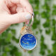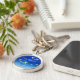 Ichthus Mönster på blå bakgrund Rund Silverfärgad Nyckelring