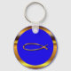 Snygg blå och guld Ichthys (fisk) design i en nyckelkedja.