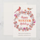 Traditionell, rustik julkort för familj eller företag inspirerad av vintersäsongen med en söt akvarell i röd burgunder, lila, rosa och orangefärgade julbärskrans med bladverk och två fåglar - en kardinal och en rödhake - och en modern samtida "God Jul" typografi skrift. ++++++++++++ Personliggör det med dina önskningar och ditt namn! ++++++++++ Du kan lägga till din egen handskrivna personliga text och signatur på baksidan.