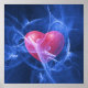 En digital bild som skildrar ett styliserat rött hjärta i en blå ryggstöt som ser ut som is.