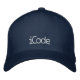 "iCode" har en vit, stickad, typsnitt med mörk blått bakgrund. Färg kan dock ändras så att det passar dig. Underbar hatt för datorprogrammerare.