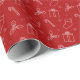 Den här pappra inslagningen har en röd och vit julikon mönster med stjärnor, snöflingor, holly, polkagrisar, julklappar och presenter på julröd bakgrund.