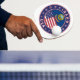 Idahos flagga med flagga Idaho och flagga i USA färg, rundad form. Emblem av Idaho. Idahos försegling. Samling i USA Stater.