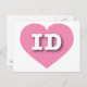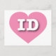 Det här vykortet har ett pulserande hjärta för rosa som innehåller det feta, vita, övre brev-ID:t för fodral, förkortningen för officiellen för tillståndet Idaho, dvs. körtlartillståndet. Baksidan av vykortet är tom i väntan på dina handskrivna känslor eller anpassade texter. Välj teckensnitt stil, storlek och färg.