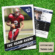 Vi presenterar vårt amerikanska fotbollskort - där gridiron glory möter elegant design i blå, svarta och skarpa vita nyanser. På framsidan anpassar du det viktigaste: lag namn, spelarens fullt namn, position och jersey-nummer, och placerar din favoritspelare i strålkastarljuset som aldrig förr. Vänd det över och dyka djupt in i de stater som definierar spelet: födelsedatum, stad, stat, höjd, vikt, kasta stil, spela spel, spela vidare försök, komplikationer, totalt antal utlösta varv, tuchdown, avlyssning - allt är där! Dessutom, upptäck den fängslande spelarbio som gör varje kort personligt berört. Med ett dynamiskt sans serif-teckensnitt fångar kortet den amerikanska fotbollens puls med alla detaljer. Det är mer än bara ett kort - det är en symbol för den passion och hängivenhet som underblåser spelet. Oavsett om du är en säsongsbunden samlare eller en fläkt som tittar för perfekten, så är vårt amerikanska fotbollskort den ultimata touchdown. Perfekt för äldre nattgåvor, omhuldade minnesmärken eller bara för att fira det spel som du kärlek spelar, detta kort är ett måste för varje fotbollsentusiaster.