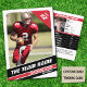 Upplev grillets puls med vårt amerikanska fotbollskort - där varje spel är odödligt i pulverrött och svart mot en skarp vit bakgrund. På framsidan anpassar du det viktigaste: lag namn, spelarens fullt namn, position och jersey-nummer, gör din favoritspelare till en gridiron-ikon. Vänd över den och lås upp de stater som definierar storhet: födelsedatum, stad, stat, höjd, vikt, kastande stil, spel, övervältringsförsök, komplikationer, totalt antal avlönade varv, tuchdown, avlyssning - allt är där! Dessutom, ta bort i den biograf som ger varje kort ett djup. Med ett dynamiskt sans serif-teckensnitt fångar kortet den amerikanska fotbollens elenergi med alla detaljer. Det är inte bara ett kort - det är ett bevis på spelets passion och hängivenhet. Oavsett om du är en hård samlare eller en fläkt i sökandet efter perfekten, är vårt amerikanska fotbollskort den ultimata touchdown. Perfekt för äldre nattgåvor, omhuldade minnesmärken eller bara för att fira det spel som du kärlek spelar, detta kort är ett måste för varje fotbollsentusiaster.