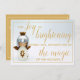 Detta inspirerande julkort är bild i en liten ängel med vingar och krona. Citatet, i det gyllene teckensnittet, säger "Joy of brighting other life, blir för oss helgdagarnas magi". Baksidan, med anpassade text, presenter er önskemål i julklapp i vitt på en gyllene bakgrund.