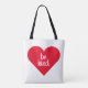 En inspirationslös offert var en slags väska. Minimalistisk, pulserande röd färg-hjärtgrafik med det inspirerande citatet "Be-Kind" i ett enkelt, vitt handskript med text i hjärtat. Modern uppmuntran till fred och förståelse, eller till att lägga på när som helst på året, med speciell betydelse för Valentines day, framgång eller ledarskap, stöd till kristna kvinnor, eller till att öka medvetenheten om mobbning eller autism. Steg för steg inspirationsserien finns endast på Zazzle på zazzle.com/store/KrisHarty, designad av internationell designer, Kris Harty. © 2020 Kris Harty Step by Step Inspirational Designs
