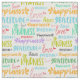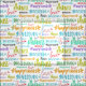 Ett flerfärgat väv med ett mönster av inspirerande ord och känslor - lycka, vänlighet, tacksamhet och kärlek - i charmerande färger för typsnitt och roligt.