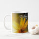 Börja dagen med en inspirerande fras: "Idag är din dag." Mugg har en solrosdesign som lyfter upp. Du kan köpa som det visas eller lägga till ett eget ordspråk eller fotografi. Ett solrosrecept från offentlig domän användes för att skapa detta kaffe mugg.