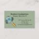 Beställnings- privata utredningvisitkortar som göras i dämpad grönt, med diagram av svarten, identifierar med fingeravtryck och ett förstoringsglas. Text på bekläda och baksidaen är klar att personifiera för att läsa vad du önskar någonsin. Enkelt yet underbaren tittar kortet som får meddelandet across.