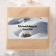 På den här etiketten visas ett närliggande foto av en vinterscen med skuggade snö-droppar över sten. Fyll i mallen fält eller klicka på anpassa för att välja det teckensnitt stil, storleka och färg som du vill använda.