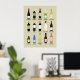 Lägg till en roligt i köket eller vilket rum som helst med det här poster som visar flaskor i vin i en enkel stil med de olika sorterna vitt, rött och mousserande vin som identifieras under varje flaska, som t.ex. chardonnay, rosennoir, malbec, champagne och så vidare. Det är perfektens dekanor för vin älskare och konnoisser.
