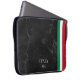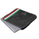 This laptop sleeve transforms technology into a design accessory for the "Identity Tech" trend. The surface features a graphic print simulating black marble with white veining. On the side, three vertical tricolor stripes frame the customizable "M.G" initials. The print finish is matte and scratch-resistant, offering elegant protection that communicates professionalism and attention to material details of Italian design.