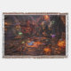 Add a touch of macabre elegance to your home with the midnight banquet woven throw blanket this high-quality fringe tapestry blanket features, an incredibly detailed dark fantasy scene of a supernatural gathering a weathered witch a horned devilish figure a cloaked skeleton and a spectral horse sit around a candle lit table sharing a mysterious toast amidst the scattering of jigsaw pieces and glowing elixir set against the backdrop of a haunted castle under a blood orange sky. This woven throw is as much a piece of art as it is a cozy the rich dark tones and intricate textures make it a stunning focal point for any Gothic living room a unique Halloween