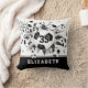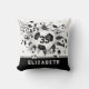 Den här coola flickans fotboll dekorativ kudde har en "explosion" av svarta och vita fotbollar i varierande storlekar och grått- och svarta stjärnformer, där du kan anpassa hennes jersey-nummer - den svarta stjärnan har en liten mönster av vit polka dots - anpassa idrottsmannens namn på en svart färg vid kuddens grund - katz_d_zynes