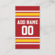 Röd, gult guld och vit - Lägg till ditt namn och nummer - Den här idrottsdesignen är perfekt för alla idrottsmän och högskolespelare. Du kan till och med göra anspråk på det här för ditt Fantasy Football team. Klicka på knappen CUSTOMIZE för att göra ännu fler ändringar.