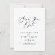 Denna idylliska snyggt-kalligrafi bröllop spara datum är perfekt för ett orustiskt bröllop. Den enkla och elegant designen har skript av typen klassisk och finare i svartvitt.