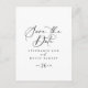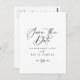 Den här kalligrafin för idyllisk snyggt sparar datumet vykort är perfekt för ett rustiskt bröllop. Den enkla och elegant designen har skript av typen klassisk och finare i svartvitt.