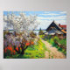 Idyllisk vårgårdsbostad Körsbärsblom på sandig mar Poster