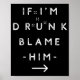 If I'm Drunk Blame Him Funny Drinking Group Couple Poster