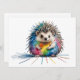 Ein freundlicher Igel in bunten Farben, eine kindliche Zeichnung eines Igels, mit Tusche und Kreide, gekleckst und geschmierte ist die Farben als Stil und Effekt des lustigen Bildes.