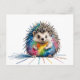 Ein freundlicher Igel in bunten Farben, eine kindliche Zeichnung eines Igels, mit Tusche und Kreide, gekleckst und geschmierte ist die Farben als Stil und Effekt des lustigen Bildes.
