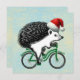 Igelkott Ridande På Cykel I Sanktoppmössa Julkort