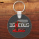 Nyckelkedjan "Igneous is Bliss", som är ett geologiskt rotationsfält på den vanliga frasen "Ignorance is Bliss", har ordagruppen "Ignorance is Bliss". Bilden skildrar ett glänsande system, där brev dras som grått sten och röd, kristallbärande magmush nedanför en aktiv, utbrytande vulkan.